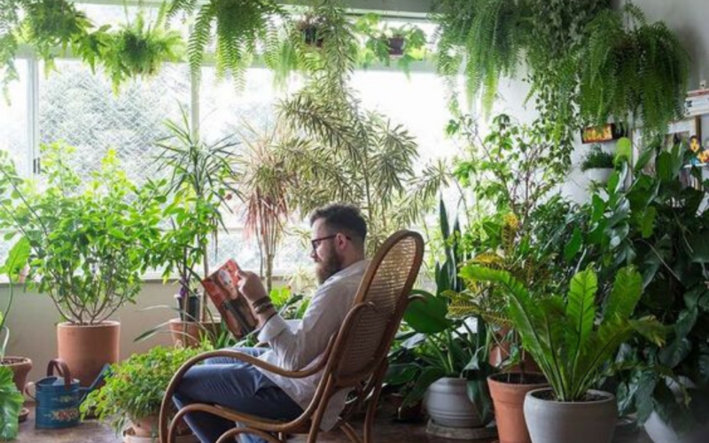 A dreamy mix of lavender flowers, purple roses, and soft green foliage.